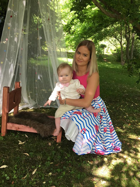 - Krikštynų dekoro idėja kilo visai netikėtai, kuomet įsigijau mielus stiklinius ąsotėlius gėrimams iš Rimi. Jų dangteliai su flamingais. Taigi taip ir kilo tema- Let’s flamingle! Taigi pripučiamas milžininškas flamingas ir mažyčiai flamingiukai ant stalo-gėrimų laikikliai iš Ebay, taip pat iš čia siunčiausi ir dekoracijas fotografijoms, įvairios lūpytės ir akiniai ant pagaliuko. Torto dekoracijos irgi iš tolimųjų kraštų. Visas prekes gavau per maždaug mėnesį, o kokybė labai gera. Didžiulis stiklinis indas su kraneliu rastas Alan Deko.