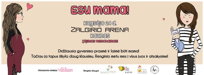Ką reiškia būti mama, kaip pasirūpinti tinkamai savo šeima, vaikais, nepamirštant ir savęs. Kokį maistą, avalynę, drabužius pasirinkti savo mažyliui. Ko reikia ruošiantis vaikelio atėjimui į pasaulį, kaip pasiruošti gimdymui ir kaip tinkamai suruošti kūdikio kraitelį ir daiktus mamytei. Pagaliau, kaip tinkamai auklėti savo jau augančius genijus, kaip ugdyti jų pasitikėjimą savimi ir motyvuoti juos kas dieną. Kaip formuoti teisingą pasaulėžiūrą ir ugdyti pilietišką žmogų? Į šiuos ir daugybę kitų klausimų bus atsakyta parodos metu „Esu mama„. Tai pirmasis tokio dydžio ir tokio pobūdžio projektas Lietuvoje. Rugsėjo 24 d. šiemet galime skelbti mamų dieną Kaune, Žalgirio arenoje, šurmuliuos mamytės, būsimos mamytės, močiutės ir būriai mūsų mažųjų smalsuolių Šis projektas toks – kokio dar nebuvo Lietuvoje. Čia smalsausime, dalinsimės patirtimis, gera energija, juoksimės ir didžiuosimės galėdamos pasakyti: “Aš esu mama”. Parodos metu vyks mugė. Parodoje bus galima įsigyti: drabužėlių tiek mamytėms, tėveliams, būsimoms mamytėms ir mažyliams, tekstilės gaminių skirtų visai šeimai. Be kita ko lankytojams visos parodos – mugės metu vyks nemokami seminarai. Juos skaitys didelę patirtį turintys, įvairių sričių specialistai: gydytojai, akušeriai, psichologai, rašytojai, ekonomistai, mitybos specialistai. Bus diskutuojama įvairiausiais klausymais, padėsiančiais mamos bei šeimos ne tik tinkamai ugdyti savo atžalas, bet ir skatinti pasitikėjimą savimi mamytėms bei tėveliams. Taip pat savo veiklą pristatys verslios mamos, mamų klubai. Dalinsis savo idėjomis, pasakos apie savo veiklas, o norinčias kvies prisijungti tapti savo bendruomenės dalimi. Paroda rugsėjo 24d. Kauno Žalgirio arenoje lankytojų lauks 10 – 17 val. Renginys nemokamas, nereikalinga ir išankstinė registracija. Ateik, juk kai mūsų daug – mes jėga.