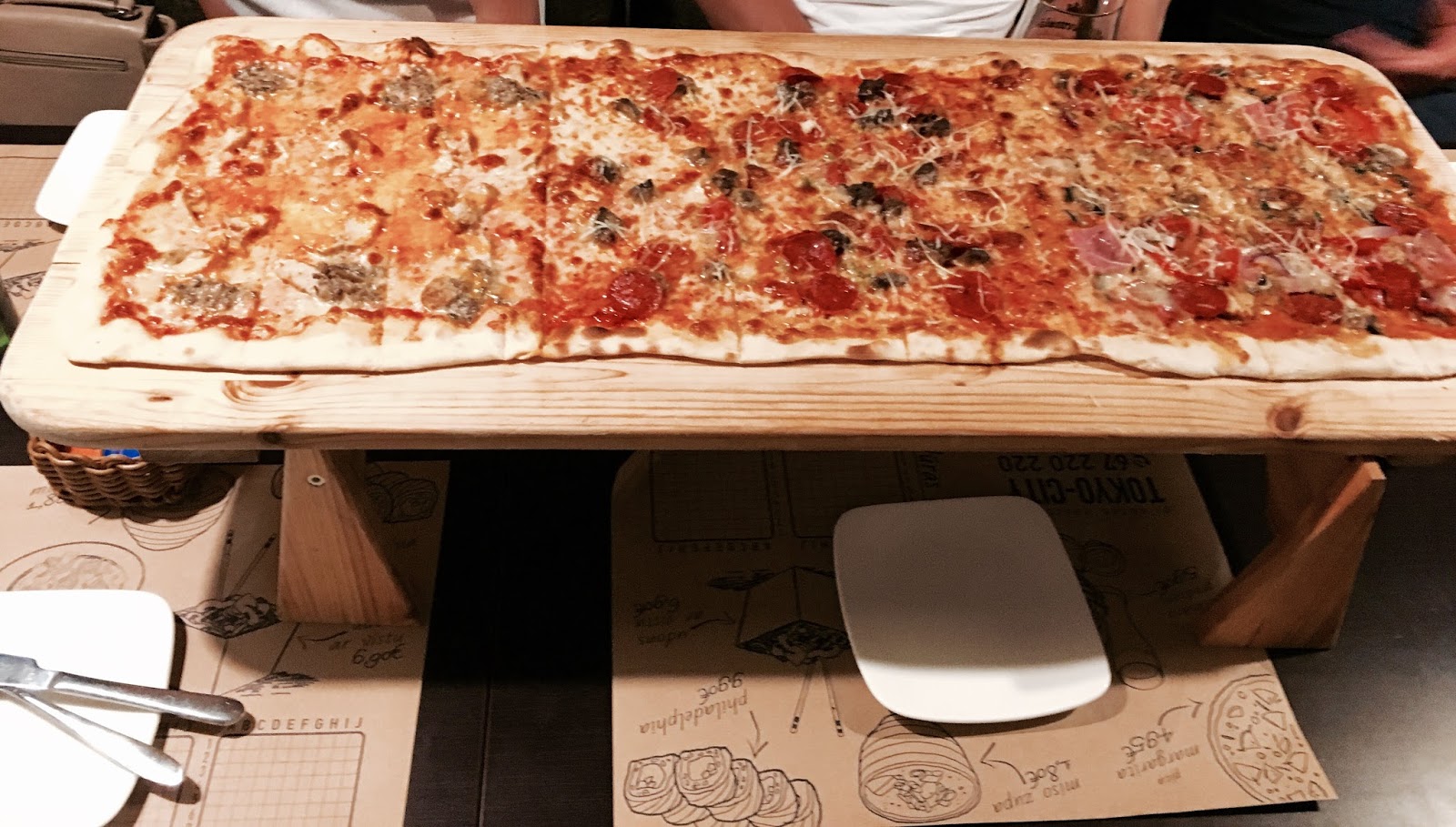 Didžiausias klausimas buvo, kur pietausime ir vakarieniausime. Kadangi viešbutyje turėjo tik pusryčius. Kainos Rygoje ganėtinai didelės, keliuose restoranuose patiekalai prasideda net nuo 30 eurų, todėl ieškojome ekonomiškesnio varianto. Ir radome! Tokyo City. Labiausiai sužavėjo kavinės idėja jog čia rasite visko. Keliaujant su didesne kompanija tai labai patogu. Jei vieni nori valgyti sushi, kiti pica- sunku susitarti kur visgi pietausite, tačiau šis restoranas turi viską. Nuo sushi iki picų, todėl visų norai bus išpildyti. O kainos labai draugiškos. Pavyzdžiui pirmąjį vakarą užsisakėme šešiese metrinę picą už 16 eurų ir būtume tikrai pavalgę, bet tas džiaugsmas, kaip pigu pakišo koją, užsisakėme antrą tokią pat ir nesuvalgėme nei pusės. Tad visi mūsų pietūs ir vakarienės ir buvo šiame restorane. Nuolaidos tikrai vertos dėmesio. Perkant vietą sushi rinkinį, antrą gauni nemokamai. Ar esate mate Lietuvoje jog dviese su vyru pavalgytumėte sushi už 8 eurus? Aš tai ne, o čia mums pavyko. Tad valgant vakarienę ir savęs nevaržanti, užsisakanti visko, ko geidžia širdis išleisite tikrai protingą sumą pinigų. Tad šis atradimas superinis. Rekomenduoju 100% jeigu apsistosite Rygoje.